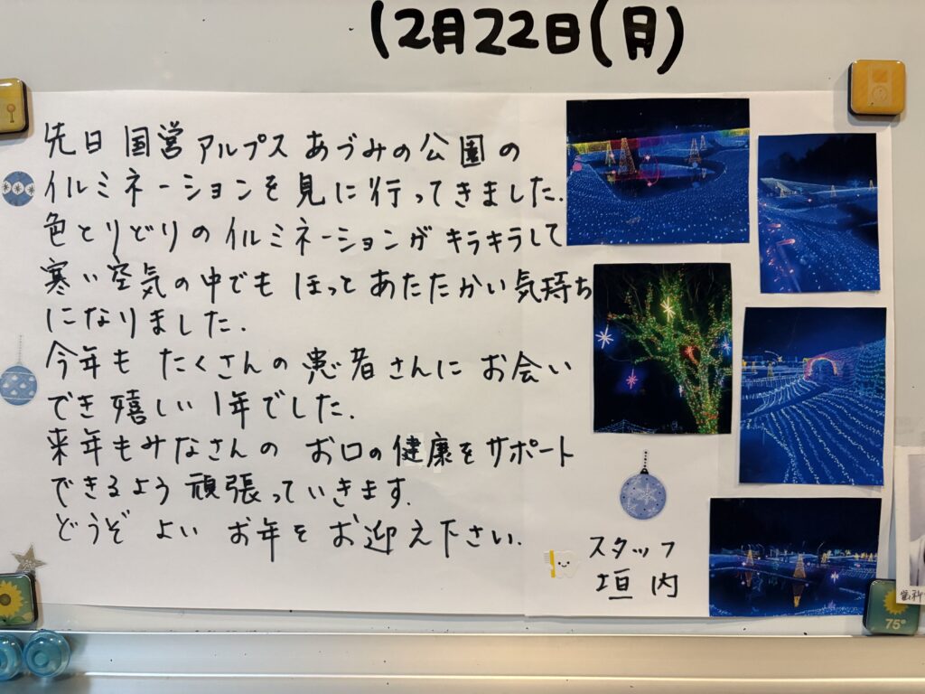 院内ブログ 院内スタッフブログ 2025.12.23 Post Share Hatena Pocket RSS feedly Pin it この記事のタイトルとURLをコピーする 診療所待合室内に掲示されているスタッフのブログ。週一回更新されています。 Post Share Hatena Pocket RSS feedly Pin it この記事のタイトルとURLをコピーする 院内スタッフブログ 前の記事 院内ブログ 次の記事